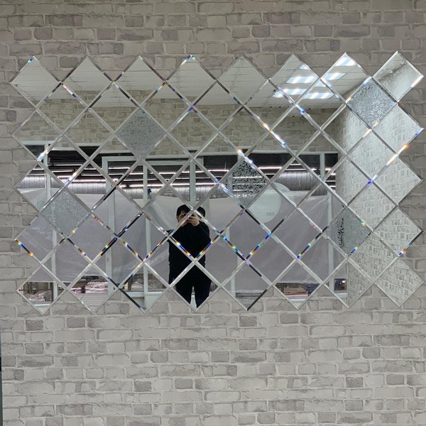 Использована серебристая квадратная зеркальная плитка размером 18х18.